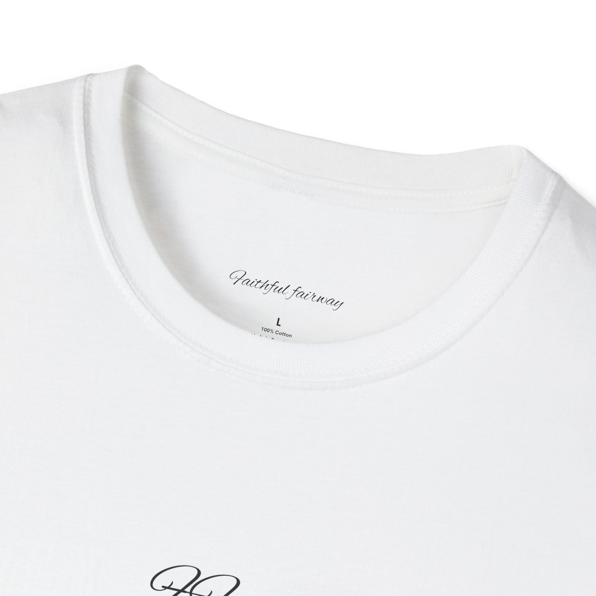 It's our simple logo, a clean design that also carries a little reminder of the faith you have in your game and in yourself. Whether you’re hitting the fairway on the course or navigating life's challenges, this shirt is a subtle reminder to stay true to what matters.